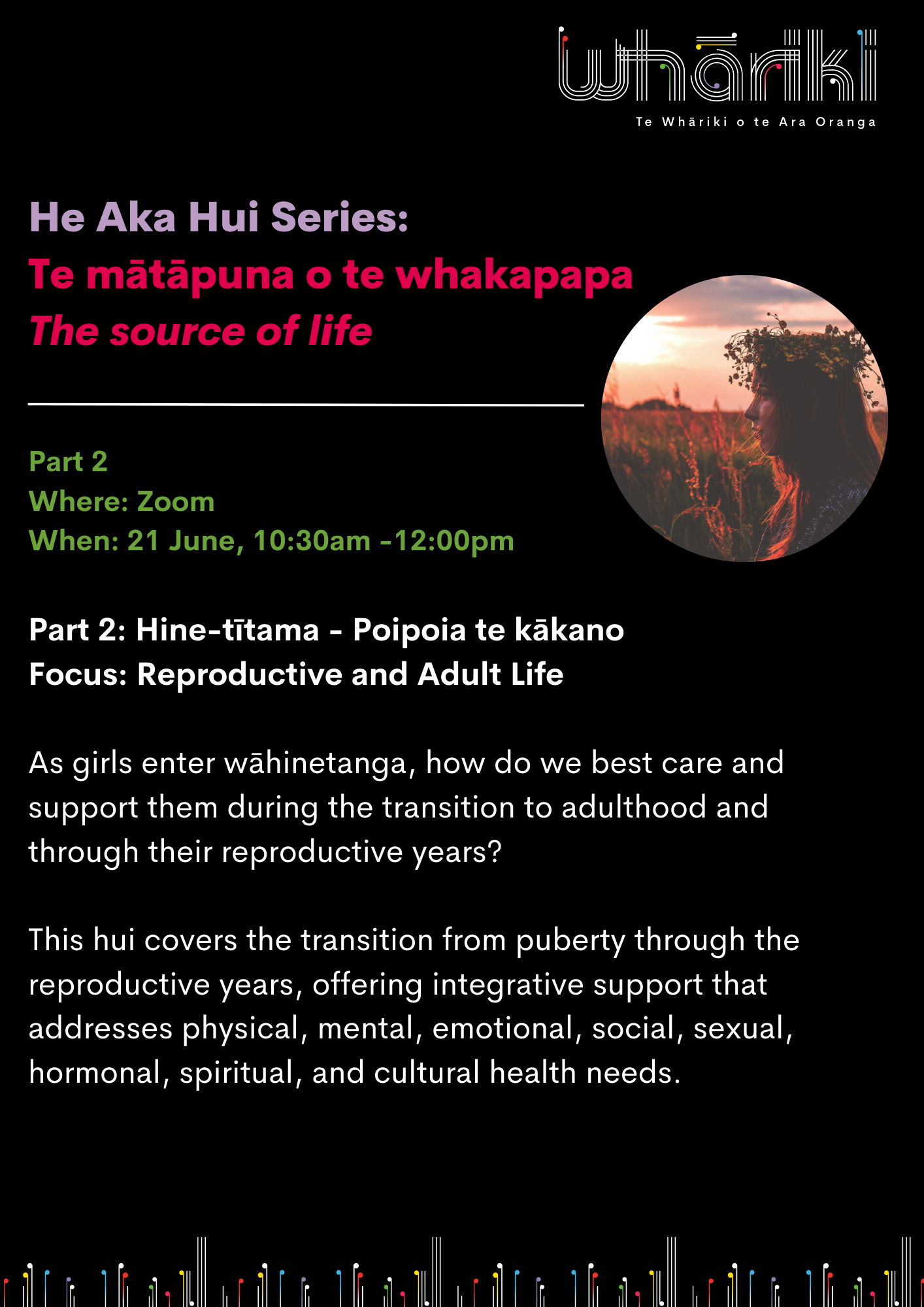 This three part He Aka Hui series will cover women’s health over their lifespan.
